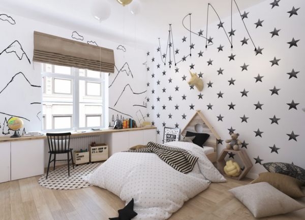 Когда с зонированием все более или менее понятно, приходит время определиться со стилем интерьера. Конечно, четкого разделения стилей в детской ожидать не приходится и все же есть варианты, идеально подходящие для молодого поколения. Прежде всего, это сканди. Скандинавский стиль давно полюбился всему миру за свою простоту, чистоту, легкость и ненавязчивость. В северных страна, где солнце появляется нечасто очень ценится свет и воздух, так называемый объем в помещении. Те же плюсы хороши и для детской: светлые стены, индифферентные пастельные и серые оттенки в сочетании с деревом отлично впишутся в комнату как к малышам, так и к более старшим деткам. Кстати, такой интерьер легко обновить – достаточно сменить цветовые акценты, мебель, аксессуары, декор и получится совсем другая история.